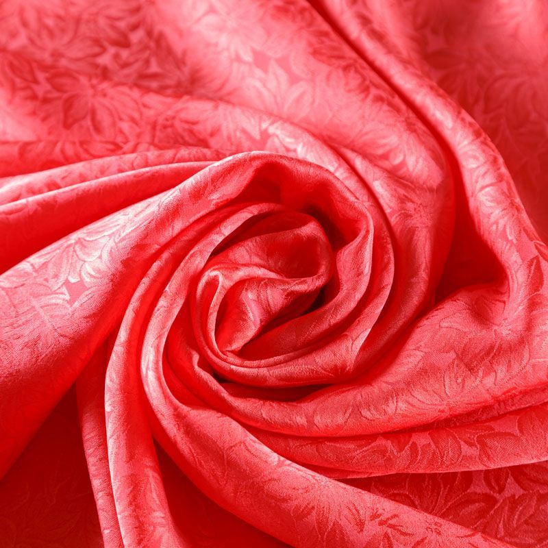 Итальянский шелк с жаккардовым цветочным узором в розовато-коралловом оттенке. Ткань тонкая, легкая, воздушная, хорошо драпируется и струится, не просвечивает. Подойдет для пошива блузы, рубашки, платья, юбки, костюма в пижамном стиле, топа.