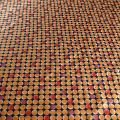 Итальянский атласный шелк с геометрическим принтом в карамельно-красных оттенках. Ткань тонкая, не просвечивает, отлично драпируется, легкая и струящаяся. Идеально подойдет для пошива платьев и сарафанов расклешенных моделей, с воланами, летящих юбок, топов, блузки, костюма в пижамном стиле.