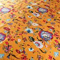Итальянский атласный шелк со стилизованным цветочным принтом на ярком фоне. Ткань тонкая, не просвечивает, отлично драпируется, легкая и струящаяся, тянется за счет эластана в составе. Идеально подойдет для пошива платьев и сарафанов расклешенных моделей, с воланами, летящих юбок, топов, блузки, костюма в пижамном стиле.