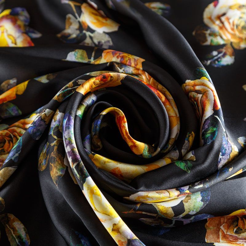 Шелк натуральный К08-115 черный принтованный в Норильске