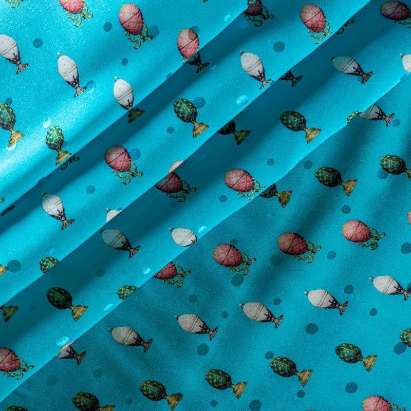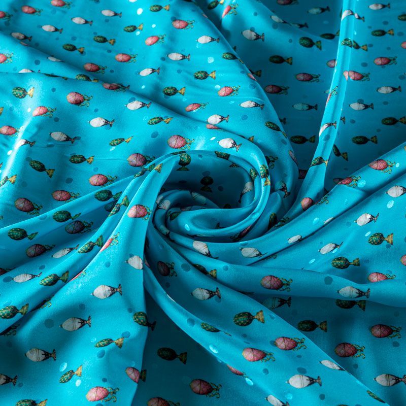 Шелк натуральный К13-350 лазурно-голубой принтованный