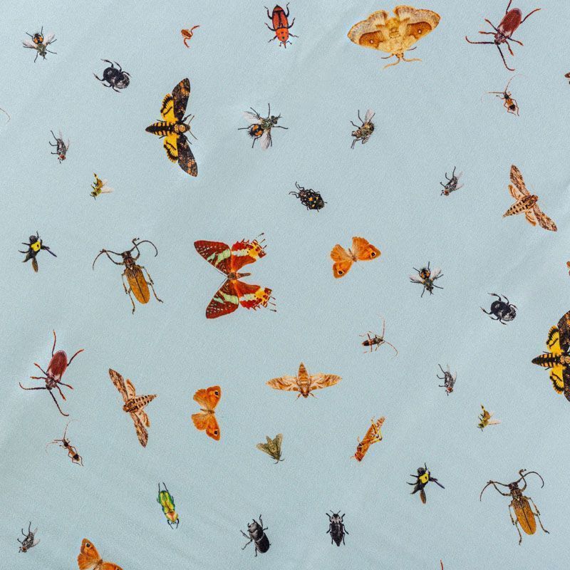 Итальянский шелк с матовой лицевой поверхностью и атласной изнанкой с анималистическим принтом на светло-голубом фоне, тонкий, слегка прозрачный, отлично драпируется, не много тянется за счет эластана в составе, легкий и струящийся. Идеально подойдет для пошива платьев и сарафанов расклешенных моделей, с воланами, летящих юбок, топов, блузки, костюма в пижамном стиле.