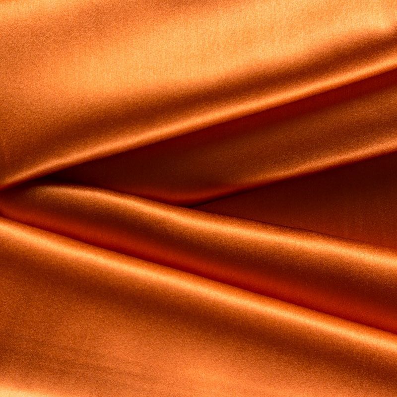Блузочно-плательный атласный шелк с эластаном оттенка жженого апельсина. Невесомая гладкая ткань приятно прилегает к телу, дарит ощущение прохлады и нежно струится. Небольшой процент эластана делает материал упругим и растяжимым. Ткань не просвечивает, идеально подойдет для платья, блузки, рубашки, шелкового топа, юбки, актуальна для пижамы и комбинации.