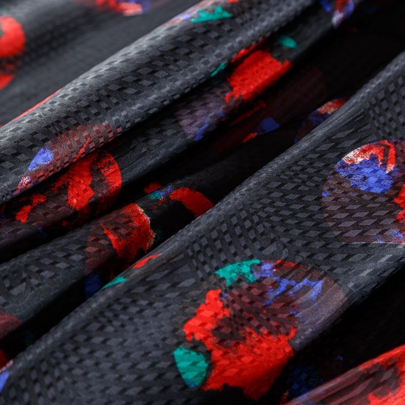 Итальянский матовый жаккардовый шелк с ярким "космическим" принтом. Ткань средней плотности, не просвечивает, струится, хорошо драпируется. Поверхность глядкая, имеет благородный сатиновый блеск. Подойдет смелых образов: летних платьев и сарафанов, как летящих фасонов, так и скроенных по косой, накидок, юбок, блузок, костюмов, широких брюк, домашней одежды.