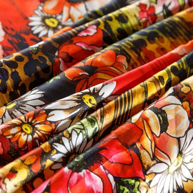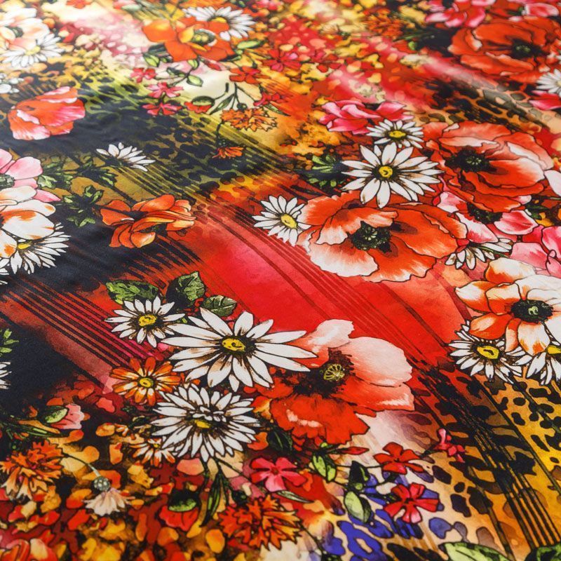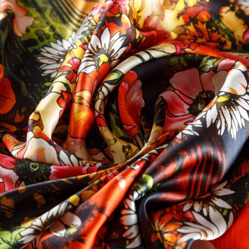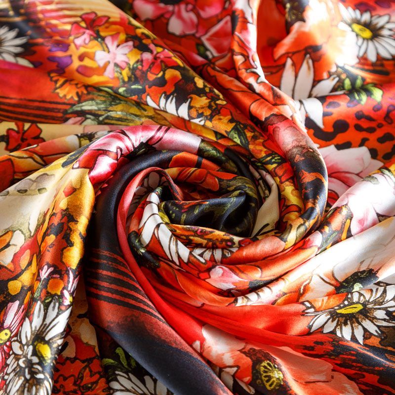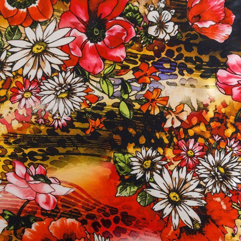 Шелк натуральный К23-178 красный принтованный