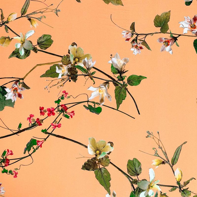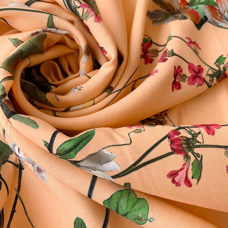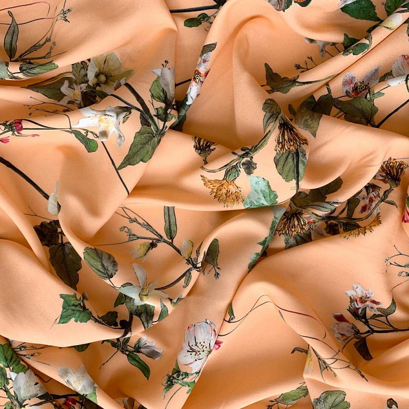 Шелк натуральный К32-169 персиковый принтованный в Норильске