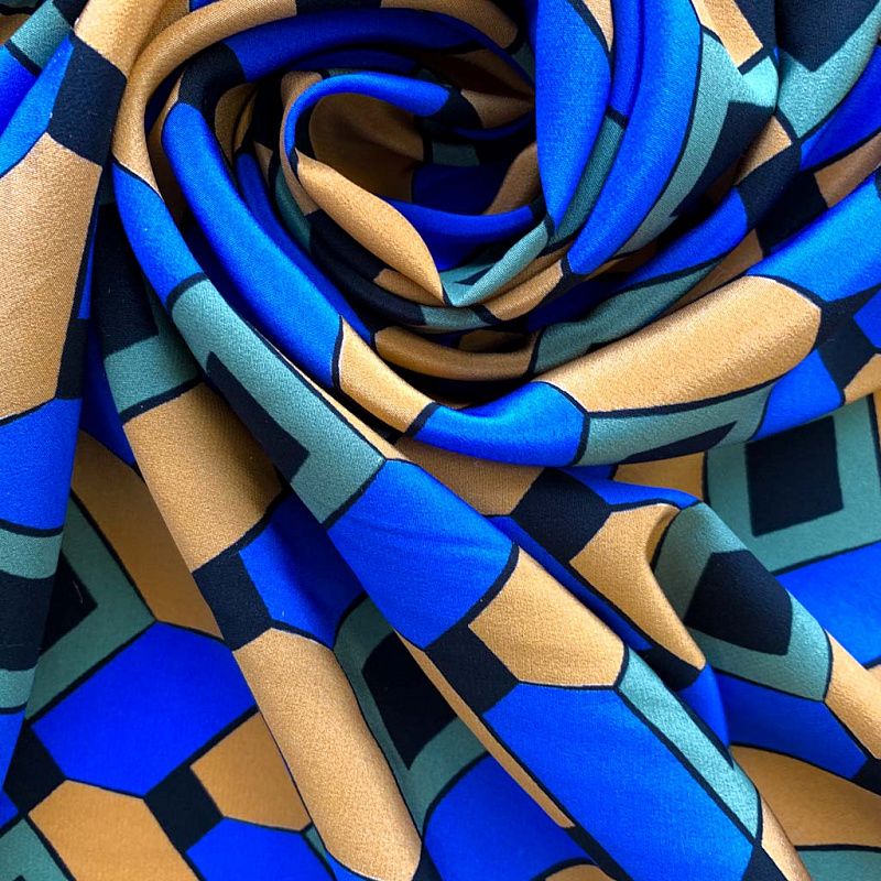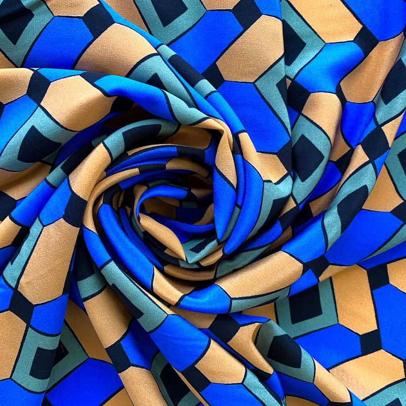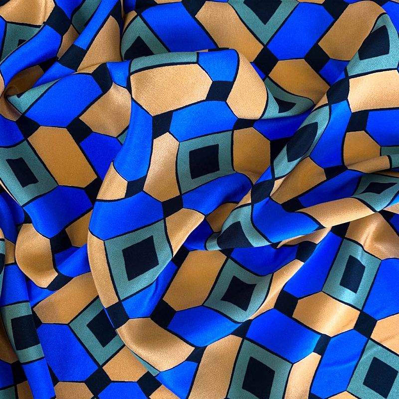 Шелк натуральный К32-232 ярко-синий принтованный в Норильске