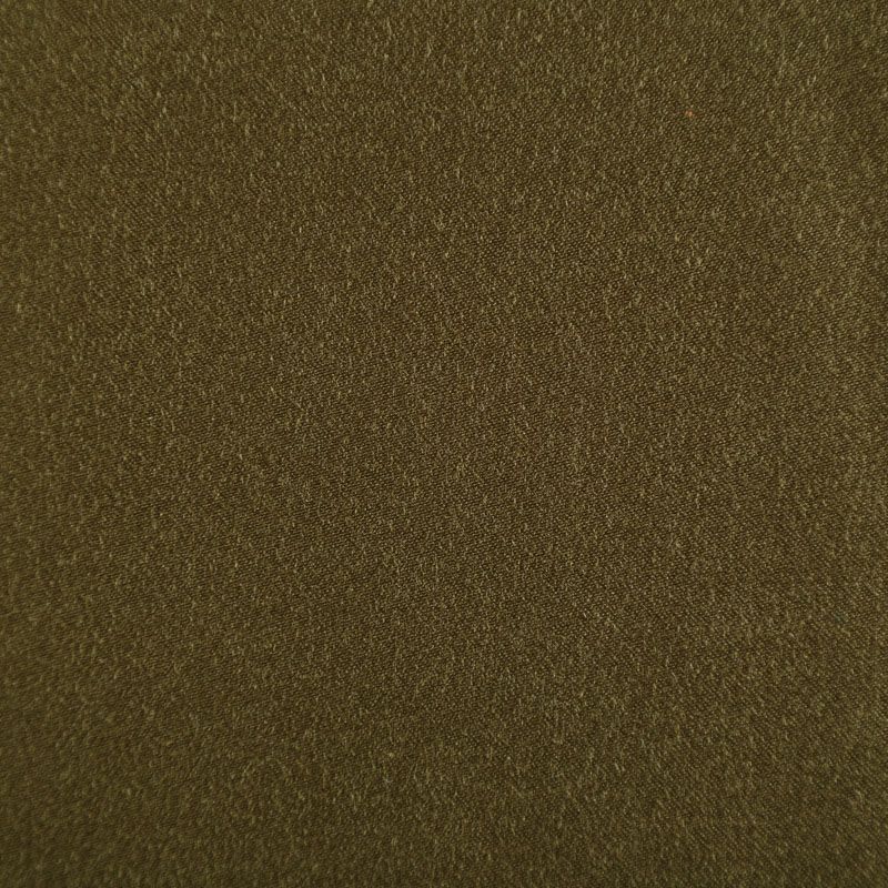 Плательно-блузочный штапель с добавлением шелка в оливково-зеленом оттенке. Мягкий, нежный, пластичный, шелковистый на ощупь, хорошо драпируется, практичный, тянется за счет эластана в составе. Особенно актуален летом, он очень легкий, обволакивающий прохладой. Идеален для пошива летней детской одежды, сарафанов, платьев, юбок, блузок, домашней одежды: халатов, ночной пижамы.