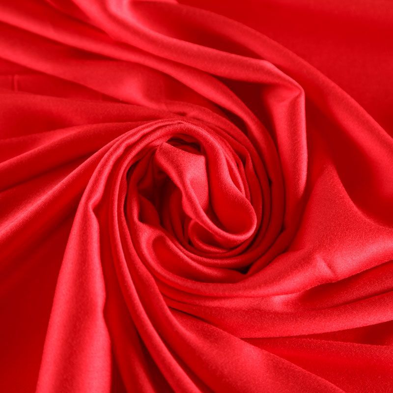 Плательно-блузочный штапель с добавлением шелка в красном оттенке. Мягкий, нежный, пластичный, шелковистый на ощупь, хорошо драпируется, практичный, тянется за счет эластана в составе. Особенно актуален летом, он очень легкий, обволакивающий прохладой. Идеален для пошива летней детской одежды, сарафанов, платьев, юбок, блузок, домашней одежды: халатов, ночной пижамы.