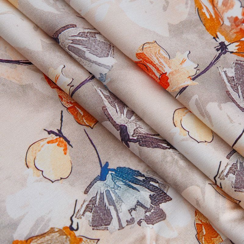 Шелк-штапель 069-17421 бежево-серый принтованный в Норильске