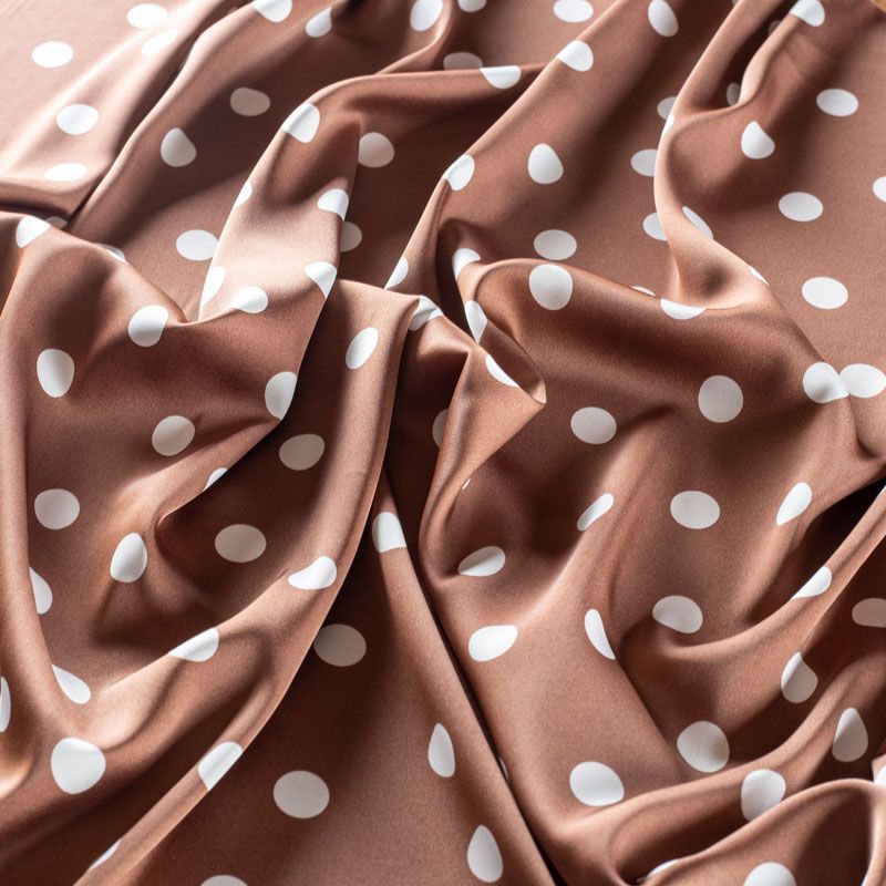 Тонкая, легкая, струящаяся ткань, не просвечивает, очень нежная и прятная к телу, обладает благородным атласным блеском, хорошо драпируется, тянется за счет эластана в составе. Идеально подойдет для пошива блузок, платьев и юбок, а также топов, платков, домашней одежды.