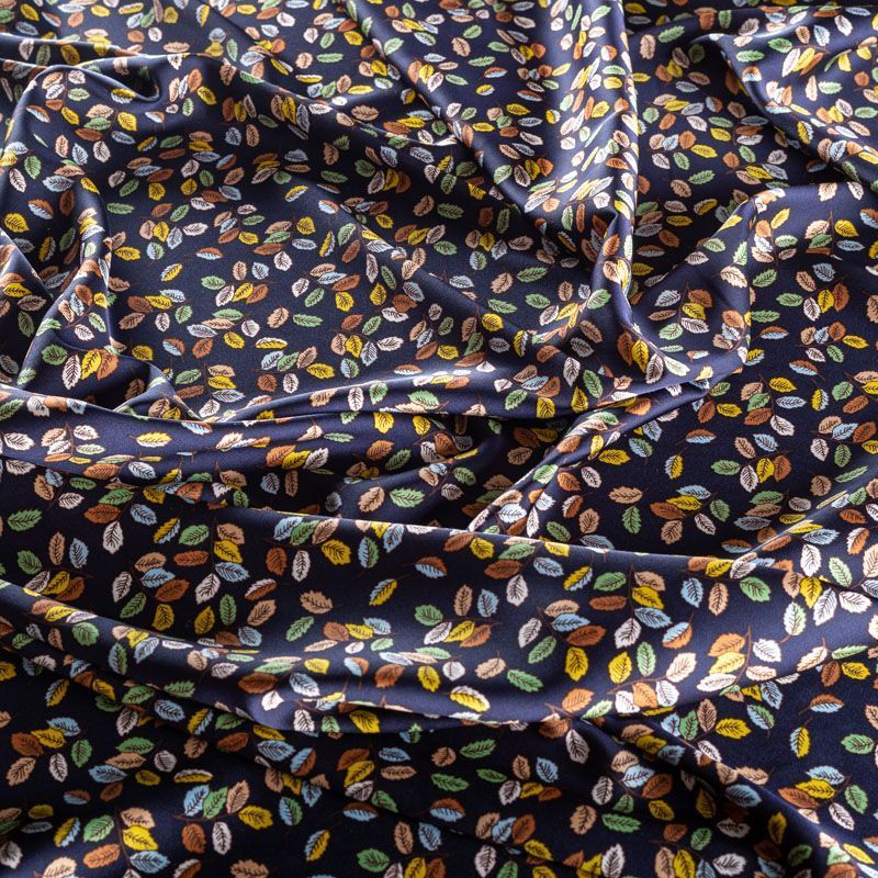 Тонкая, легкая, струящаяся ткань, не просвечивает, очень нежная и прятная к телу, обладает благородным атласным блеском, хорошо драпируется, тянется за счет эластана в составе. Идеально подойдет для пошива блузок, платьев и юбок, а также топов, платков, домашней одежды.