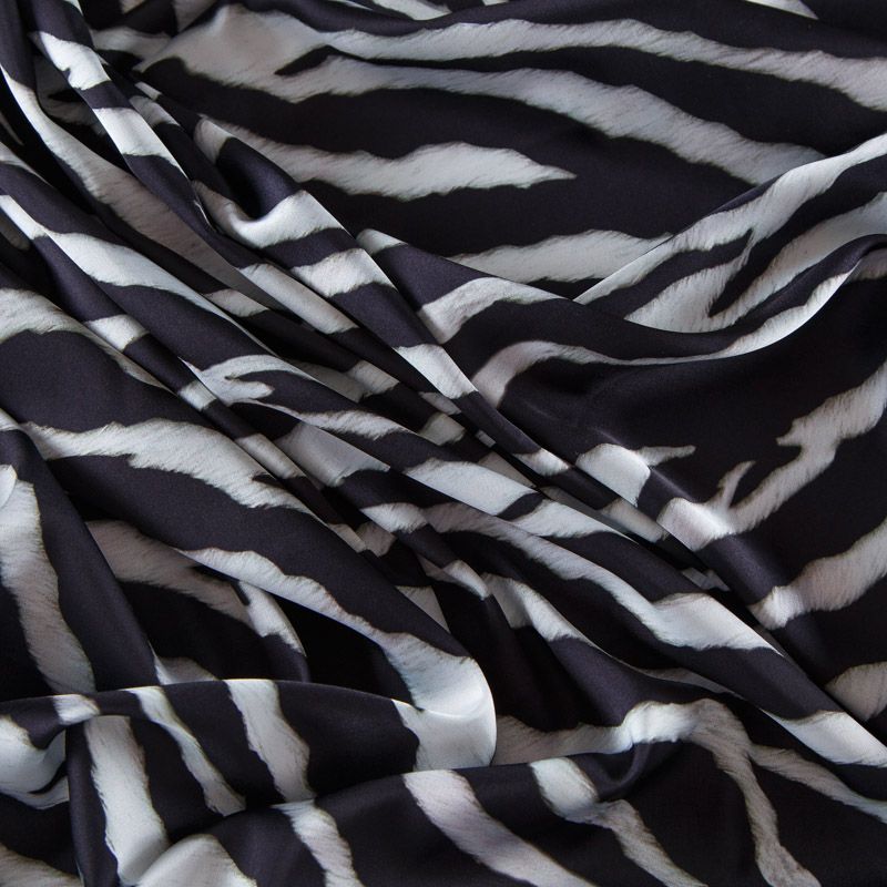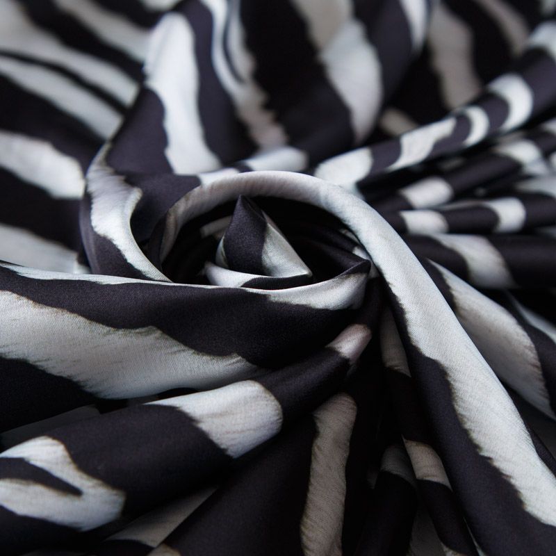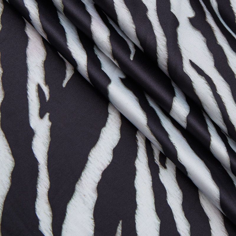 Шелк синтетический 065-13921 молочно-черный принтованный
