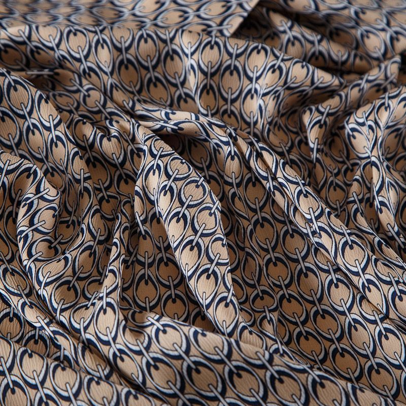 Шелк синтетический 065-17821 бежевый принтованный в Норильске