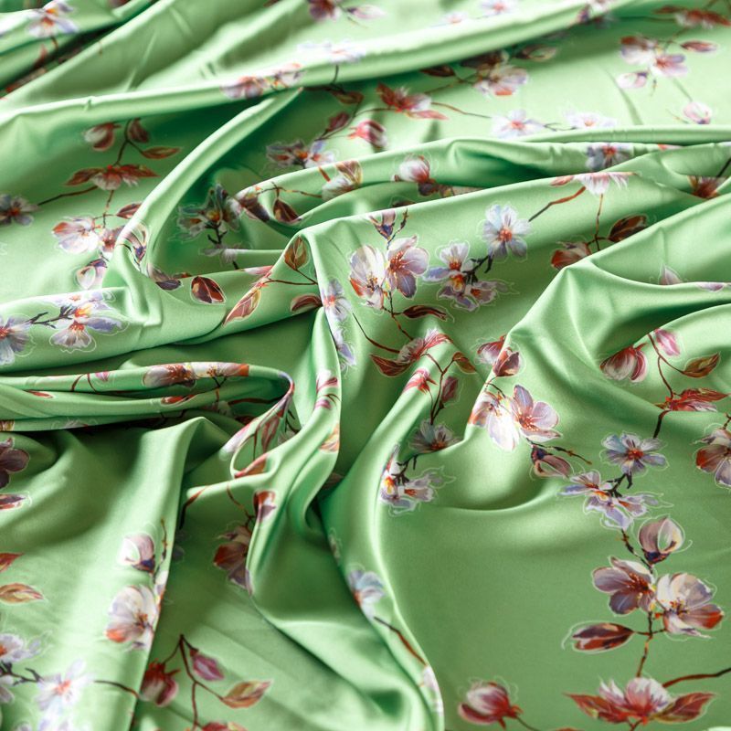 Шелк синтетический К33-044 зеленое яблоко принтованный в Норильске