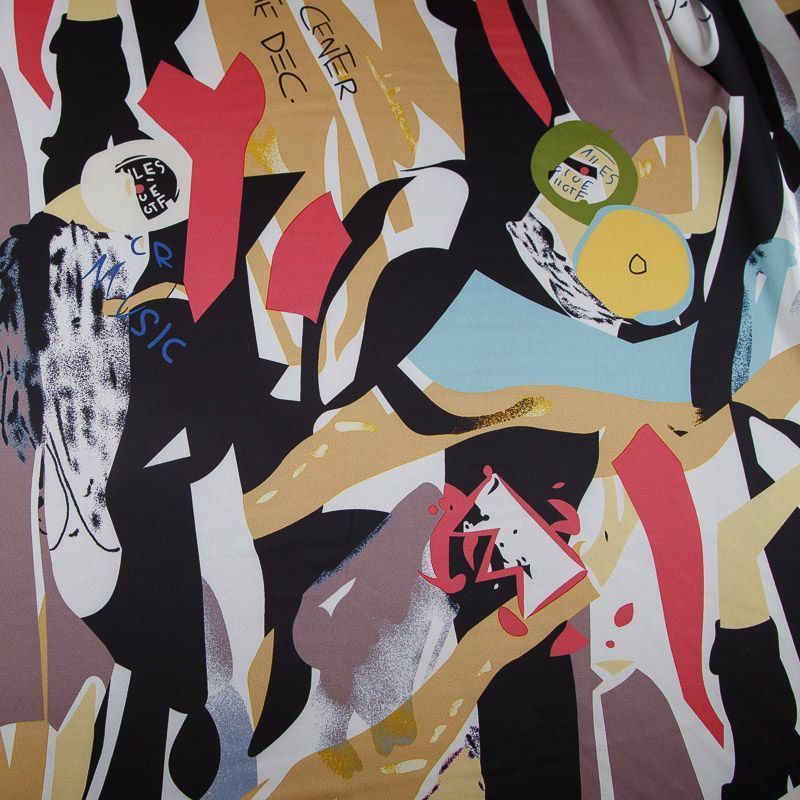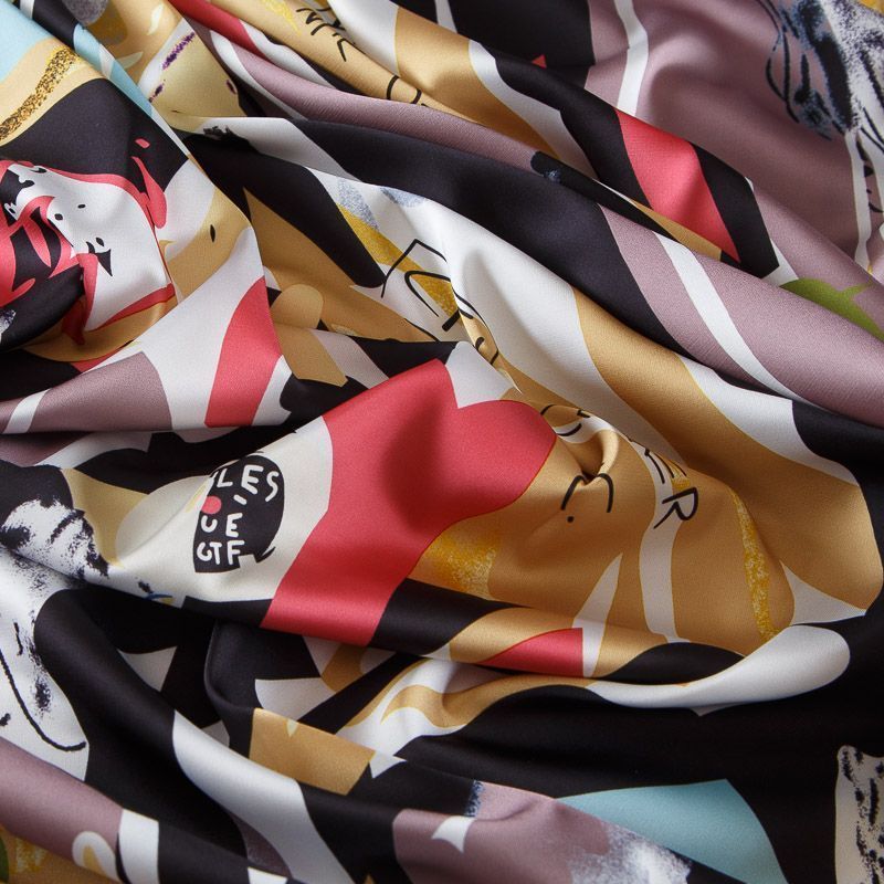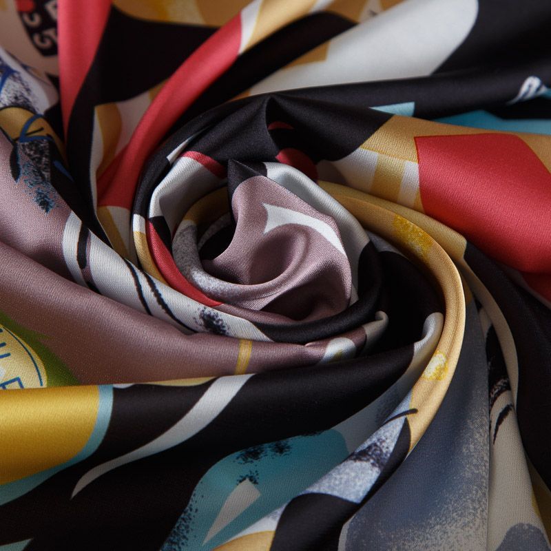 Шелк синтетический стрейч 065-17787 черный принтованный в Норильске
