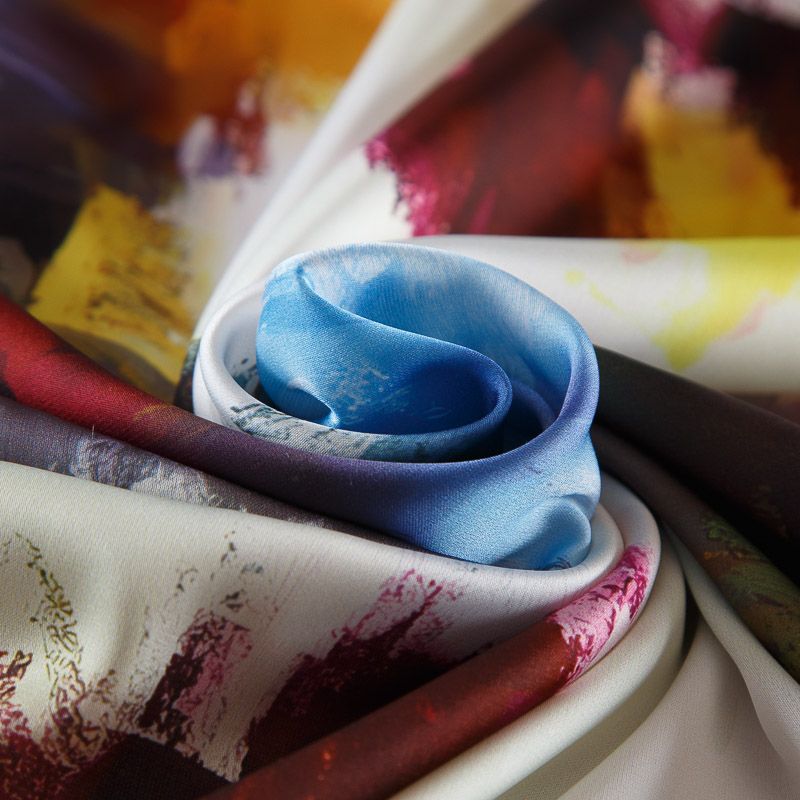 Шелк синтетический стрейч 065-17800 белый принтованный