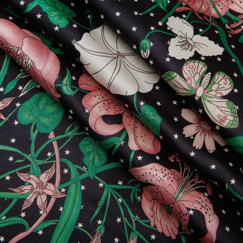 Шелк твил натуральный Gucci 064-19104 черный принтованный