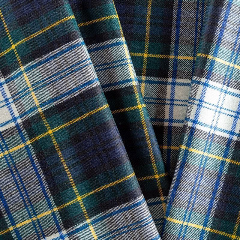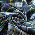Костюмно-плательная итальянская шерсть средней плотности, мягкая, пластичная, хорошо драпируется и ниспадает. Очень теплая, уютная, не колется, в носке очень комфортная. Сочетание линий зеленого, синего, молочного, желтого и голубого цветов образуют сложную клетку тартан. Ткань прекрасно подойдет для пошива стильного платья прямого или расклешенного силуэта для сезона осень-зима, куртки-рубашки, юбки, костюмов, жакетов, брюк или шорт.