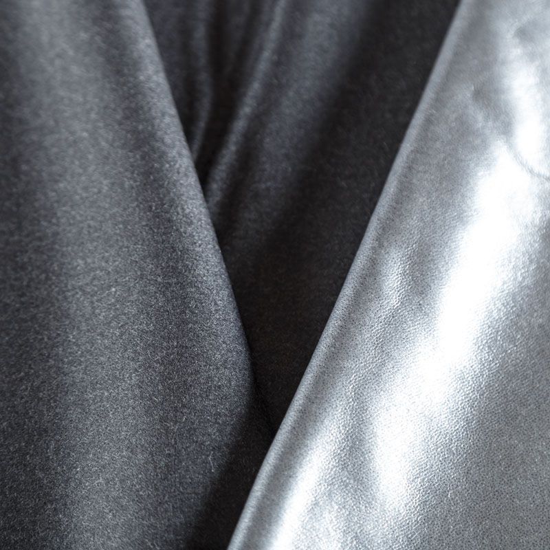 Итальянская шерсть на мембране в темно-сером оттенке. Ткань плотная, теплая, держит форму, упругая, не мнется, не просвечивает. Идеально подойдет для пошива пальто, тренча, парки, куртки, бомбера.