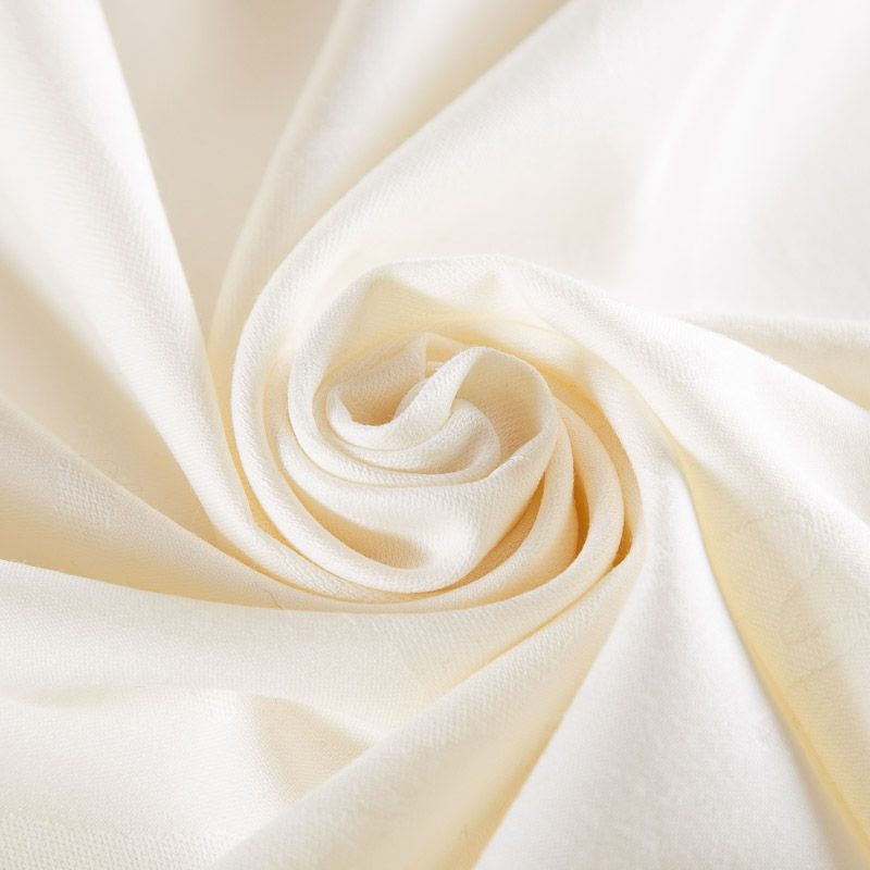 Итальянская костюмно-плательная шерсть в сливочном оттенке с жаккардовым плетением. Ткань отлично держит форму, не тянется.
