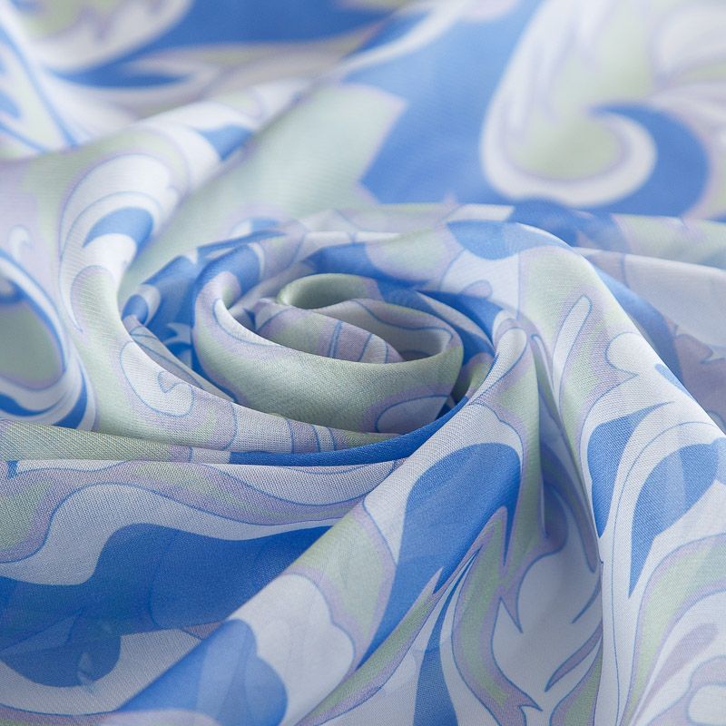 Воздушный, летящий, эффектный шифон в фисташково-голубых оттенках. Принт очень женственный и нежный. Ткань матовая, мягкая, пластичная, не тянется, достаточно прозрачная, не статичная.
