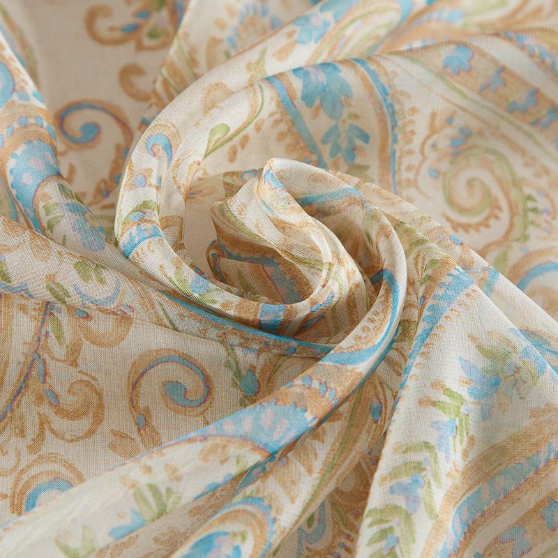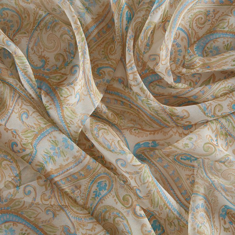 Воздушный, летящий, эффектный шифон в молочно-желтых оттенках с принтом пейсли. Ткань матовая, мягкая, пластичная, не тянется, достаточно прозрачная, не статичная. Подойдет для пошива фееричного платья, сарафана, туники, блузки, пляжной одежды.