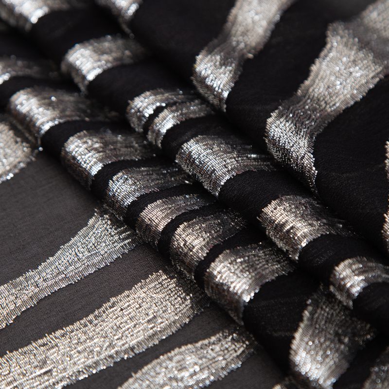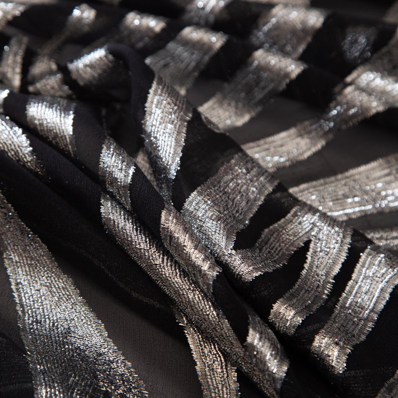 Шифон деворе шелковый 068-19623 черный/серебро в Норильске