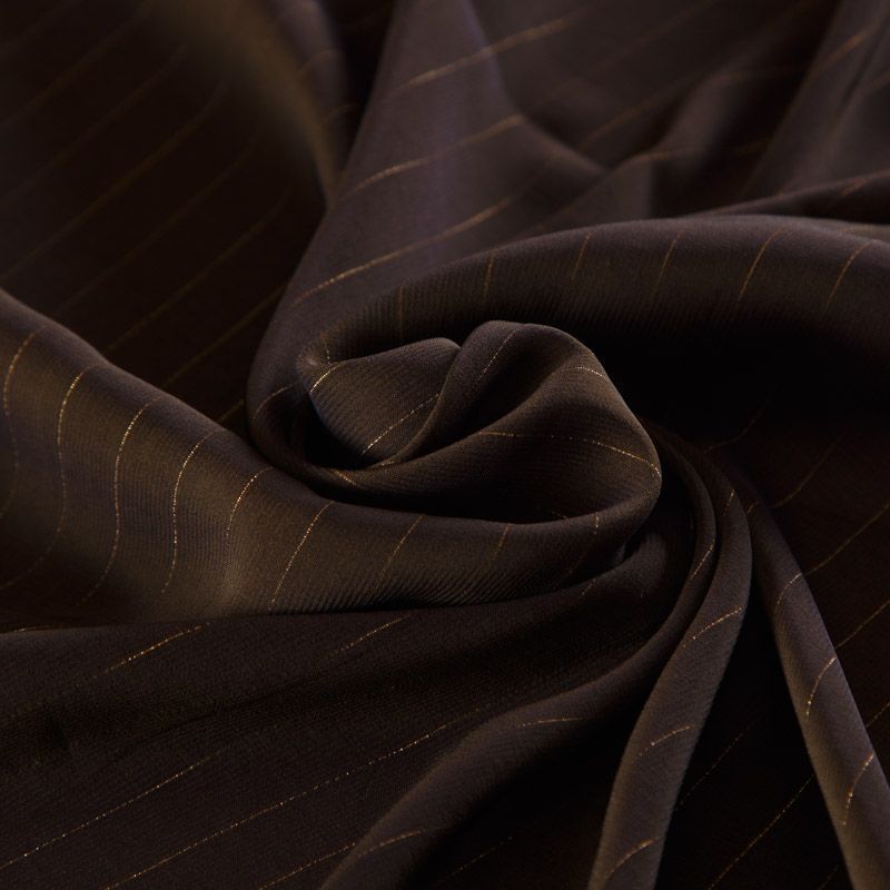 Итальянский смесовый шифон Gucci в оттенке темного шоколада с тонкими полосками люрекса. Полоски расположены горизонтально по ширине рулона.