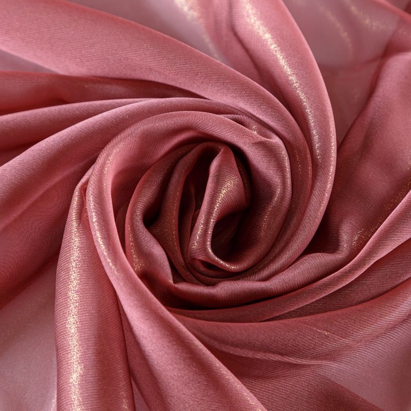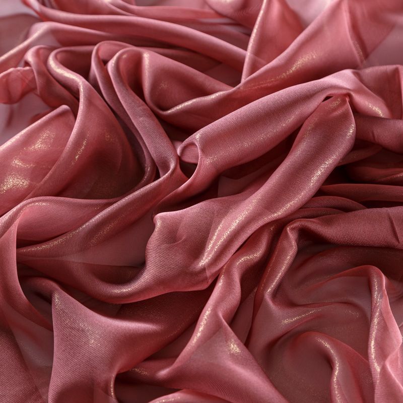 Тонкая, полупрозрачная, легкая ткань, лицевая сторона которой покрыта блестящим напылением. Шифон прекрасно драпируется, струящийся и воздушный. На ощупь шифон очень мягкий и приятный, поверхность слегка шероховатая. Подойдет для пошива тончайших воздушных блуз, изумительных вечерних и летних платьев в пол, коротких коктейльных платьев, топов, блузок, туник и элегантных шарфов.