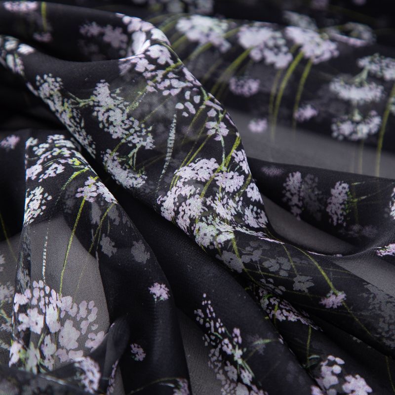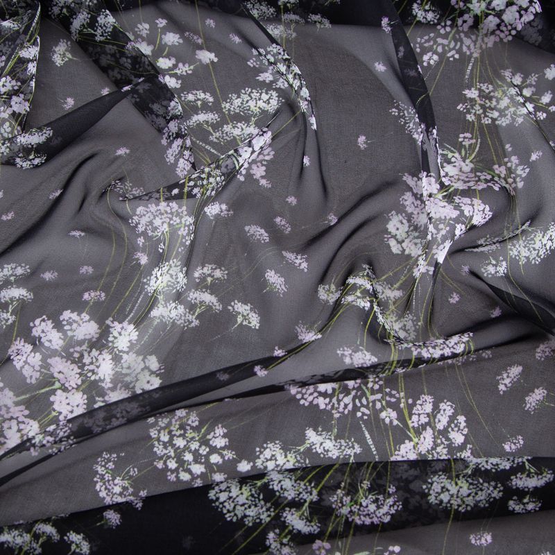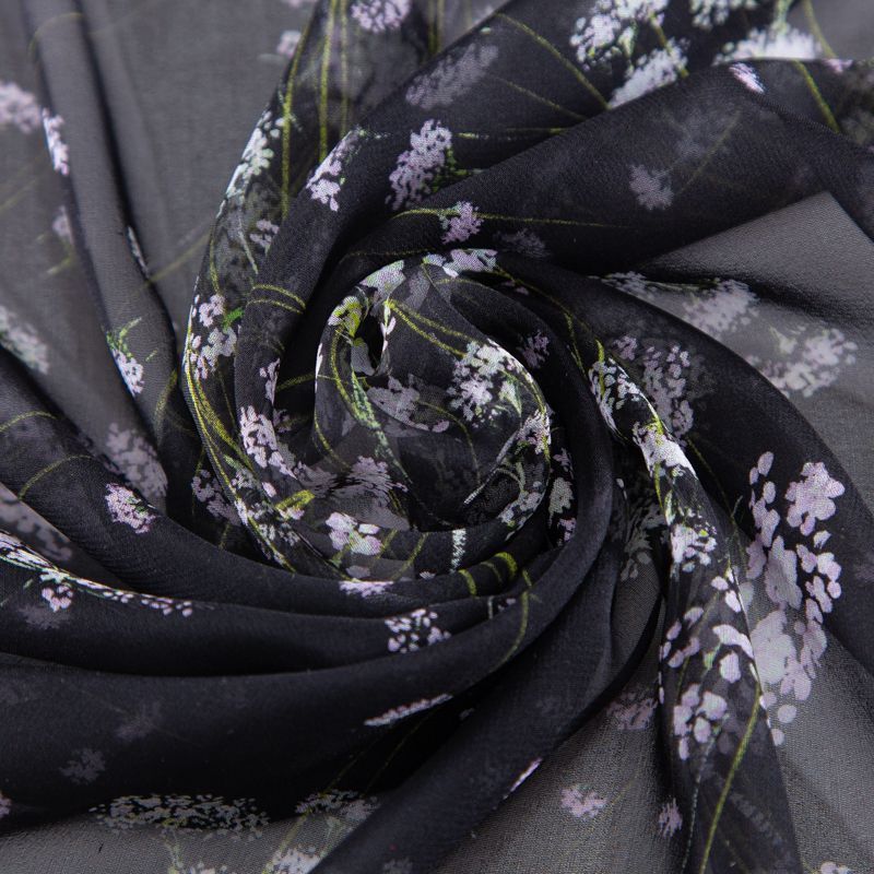 Шифон шелковый 027-20194 черный принтованный в Норильске