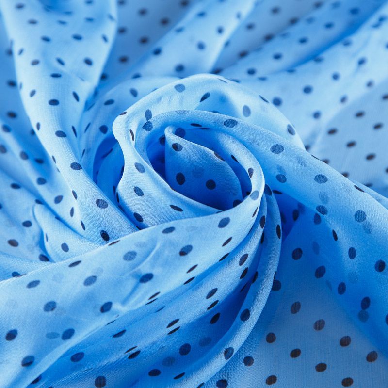 Шифон шелковый 068-12212 голубой принтованный в Норильске
