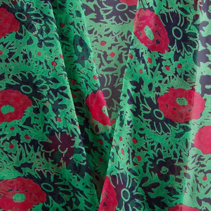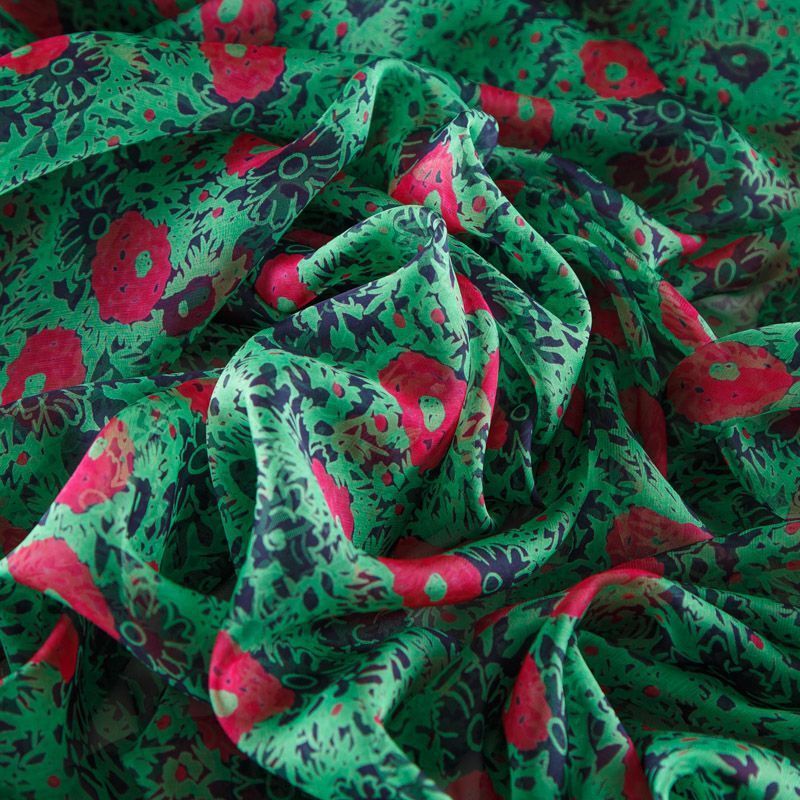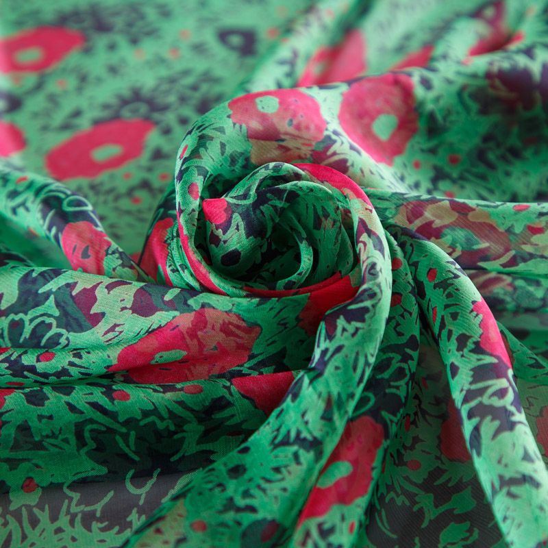 Шифон шелковый 068-12255 зеленый принтованный в Норильске