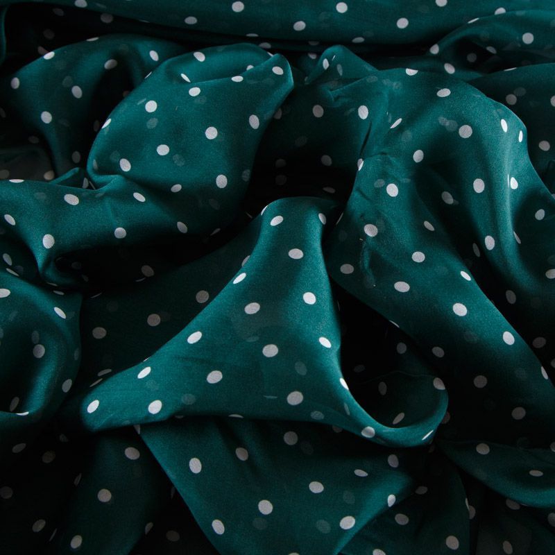Шифон шелковый 068-12259 бутылочный зеленый принтованный