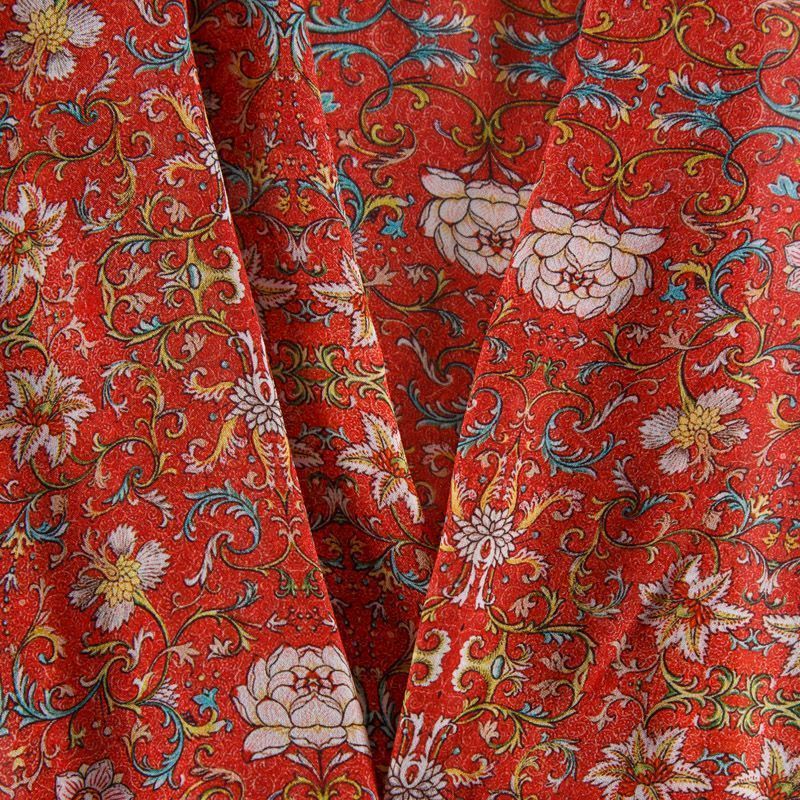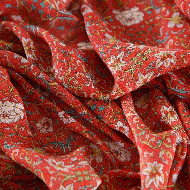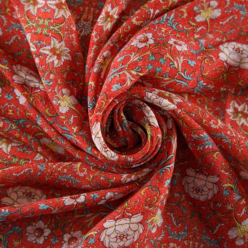 Шифон шелковый 068-12316 кораллово-красный принтованный в Норильске