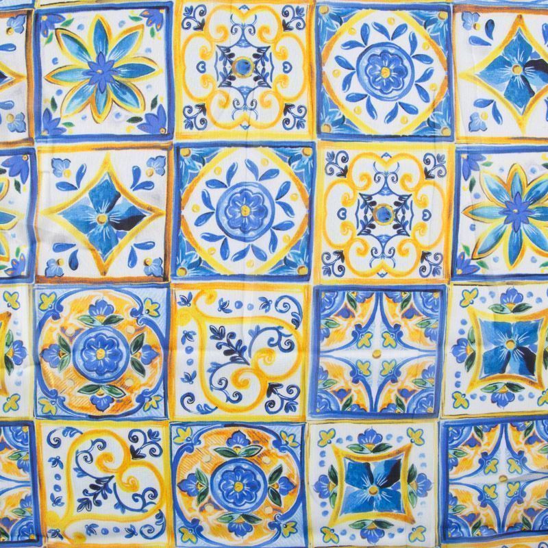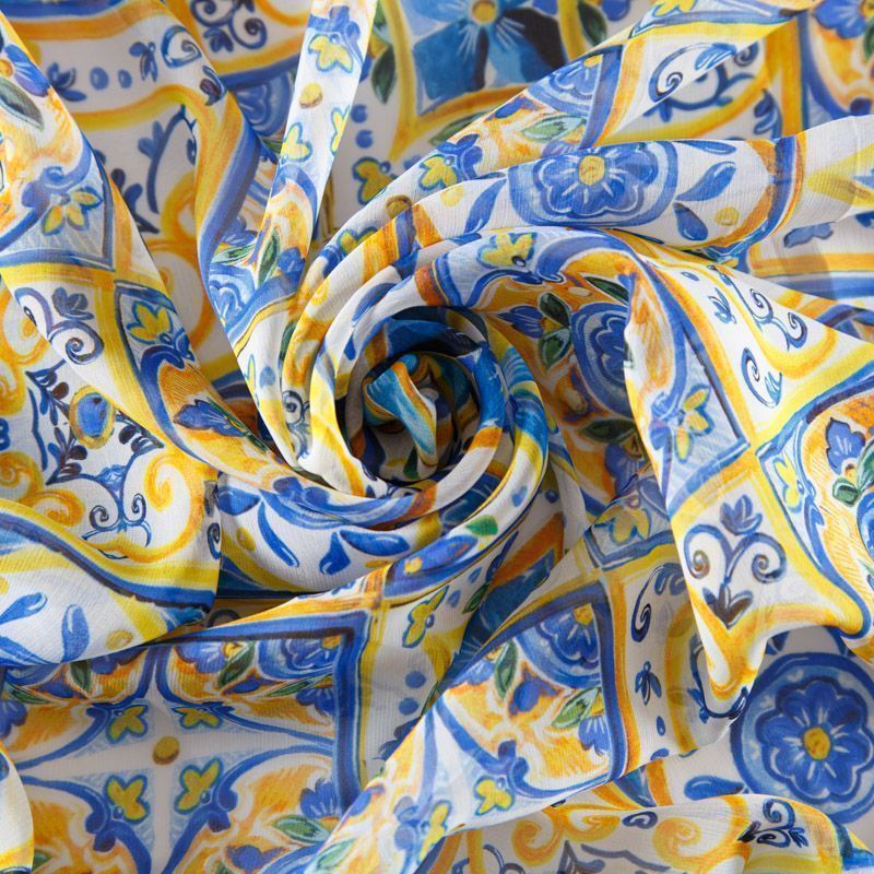 Шифон шелковый 068-12318 желто-голубой принтованный в Норильске