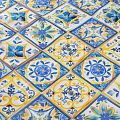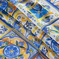 Шифон шелковый 068-12318 желто-голубой принтованный
