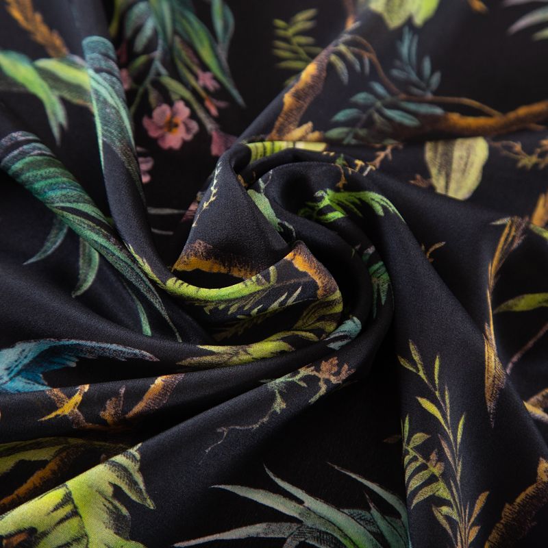 Шифон шелковый 068-19642 черный принтованный