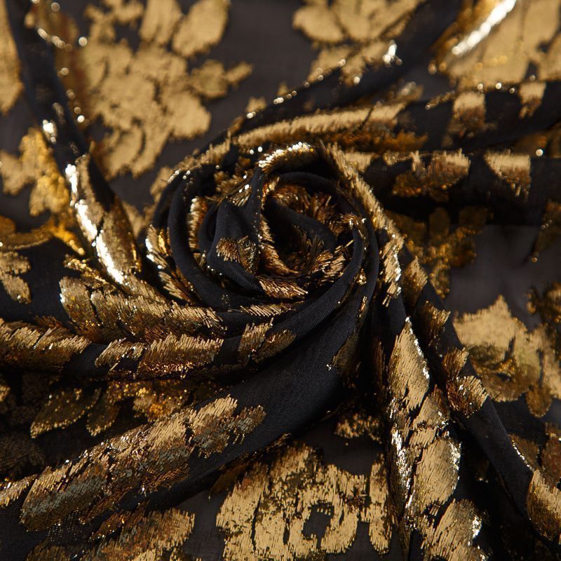 Шифон шелковый с люрексом Yves Saint Laurent 068-19076 черный/золото
