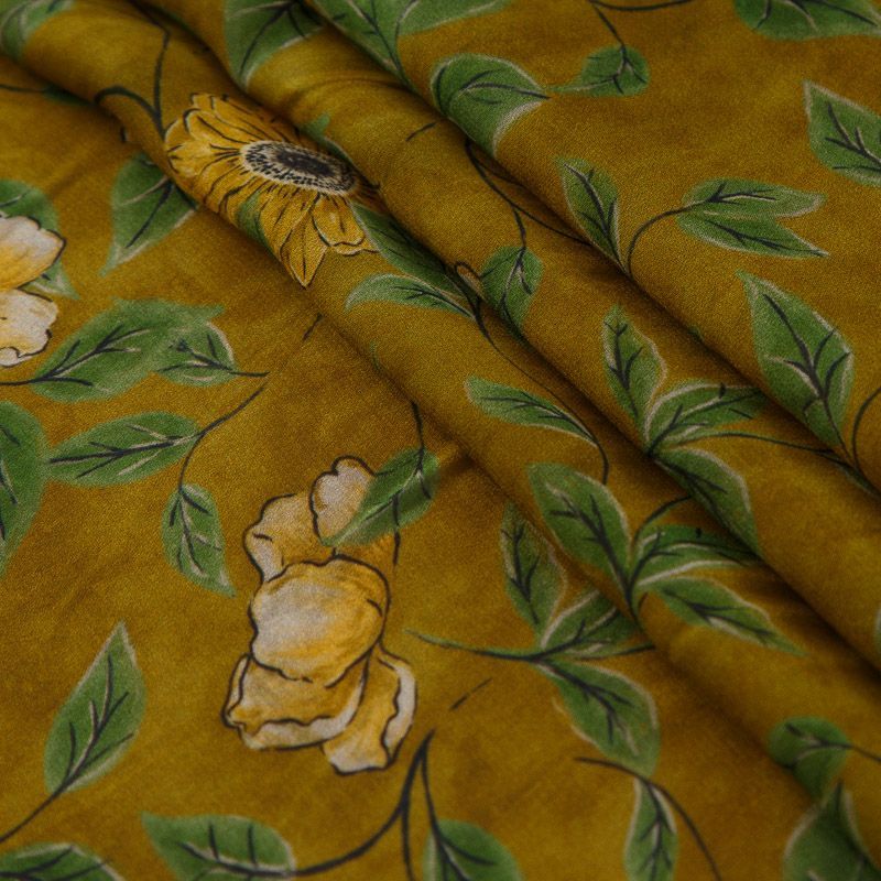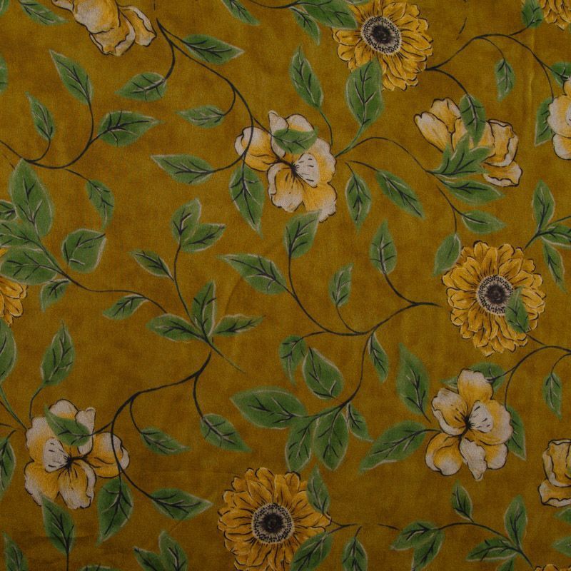 Шифон вискозный 068-16201 горчичный принтованный в Норильске