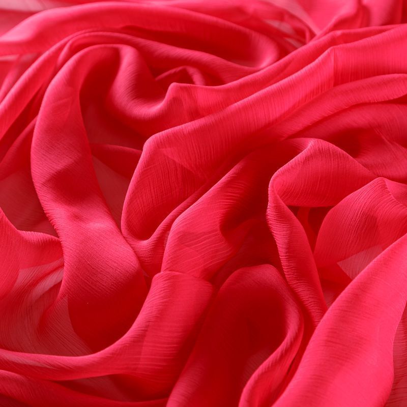 Воздушная шелковая жатая ткань, легкая, тонкая, полупрозрачная. На ощупь шифон-жатка очень мягкий и приятный, не тянется. Подойдет для пошива тончайших воздушных блуз, изумительных вечерних и летних платьев в пол, коротких коктейльных платьев, топов, блузок, туник и элегантных шарфов.