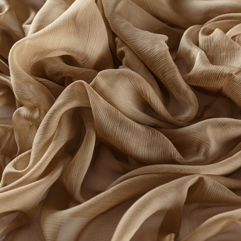 Воздушная шелковая жатая ткань, легкая, тонкая, полупрозрачная. На ощупь шифон-жатка очень мягкий и приятный, не тянется. Подойдет для пошива тончайших воздушных блуз, изумительных вечерних и летних платьев в пол, коротких коктейльных платьев, топов, блузок, туник и элегантных шарфов.