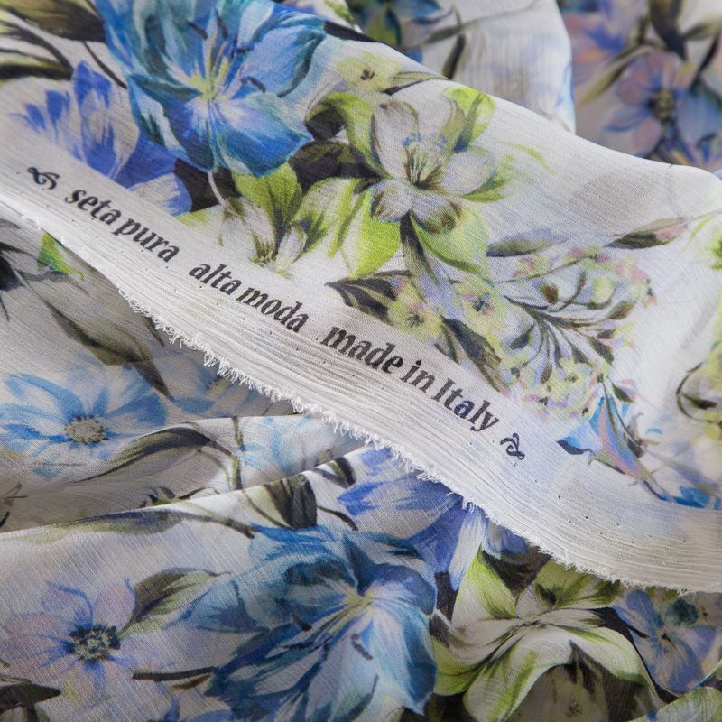 Шифон-жатка шелковый 068-19248 молочный принтованный в Норильске
