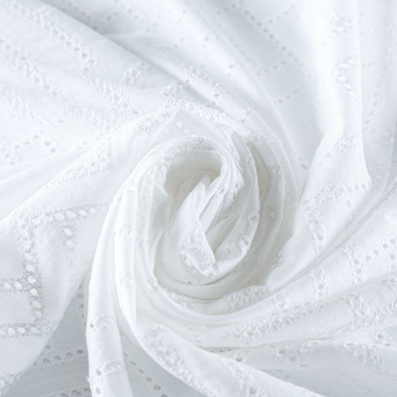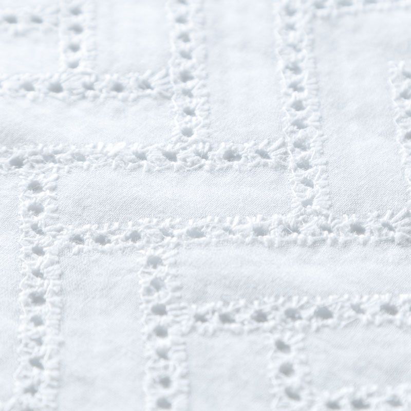 Итальянское шитье на белоснежной хлопковой основе с геометрической, элегантной вышивкой, расположеннной по всему полотну. Ткань мягкая, легкая, пластичная, приятная на ощупь, просвечивает, потребуется подклад. Обе кромки ткани оформлены фигурными фестонами. Идеально подойдет для пошива рубашки, блузы, топа в воланами, туники, платья, сарафана, юбки, шорт.
