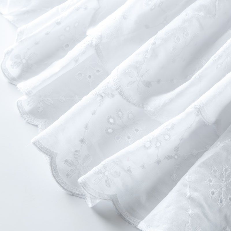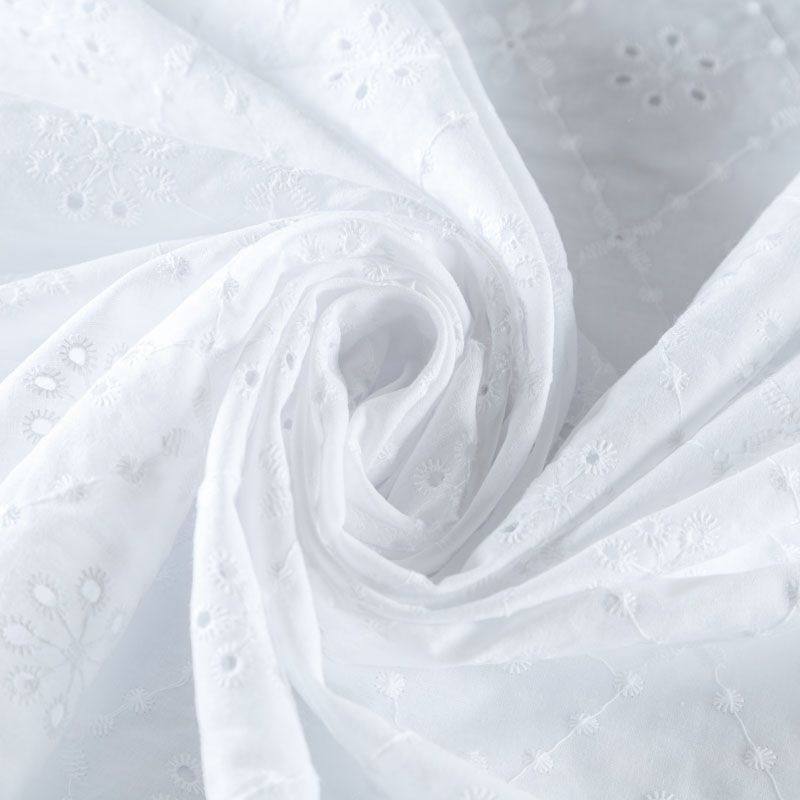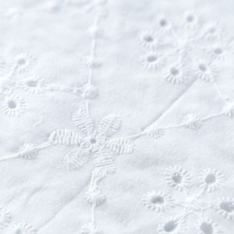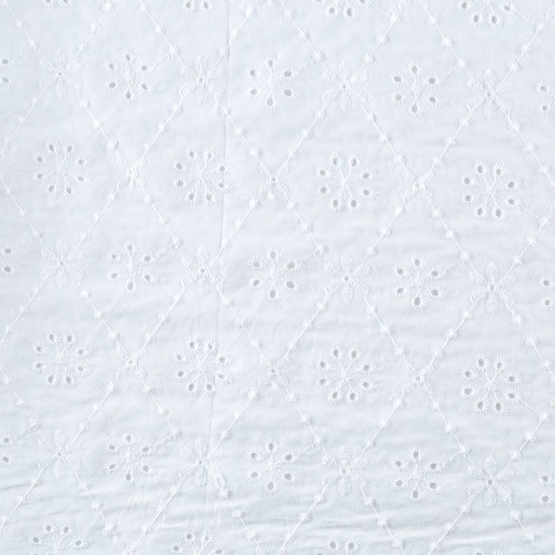 Итальянское шитье на белоснежной хлопковой основе с геометрической, элегантной вышивкой,  расположеннной по всему полотну. Ткань мягкая, легкая, пластичная, приятная на ощупь, просвечивает, потребуется подклад. Обе кромки ткани оформлены фигурными фестонами. Идеально подойдет для пошива рубашки, блузы, топа в воланами, туники, платья, сарафана, юбки, шорт.