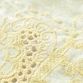Мягкий и нежный хлопок желтого оттенка с изящной вышивкой. Узор выполнен путём машинной вышивки нитками в цвет ткани и расположен вдоль кромки. Обе кромки ткани оформлены фигурными фестонами. Фактура ткани однородная, имеет тенденцию к сминаемости, просвечивает, не тянется, приятная на ощупь. Набирается на изделие объемом. Идеально подойдет для пошива летнего сарафана, рубашки, блузы, топа в воланами, туники, платья, юбки, шорт.