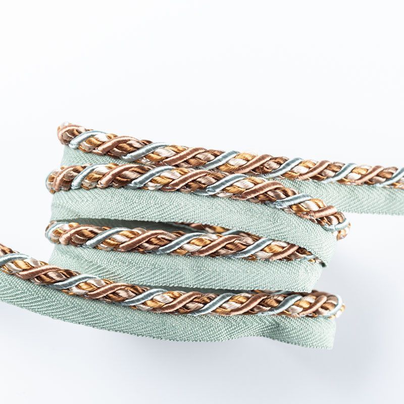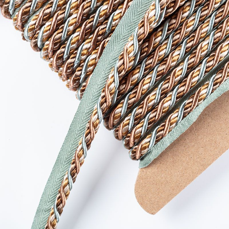Декоративный витой круглый шнур, снабженый тесьмой для втачивания в стыковочный шов изделия. Применяется для отделки мягкой мебели, чехлов, декорирования домашнего текстиля, штор, покрывал, подушек. Позволяет изделию сохранять форму, образуя каркас. Диаметр шнура - 8 мм. Общая ширина шнура с тесьмой - 2 см.