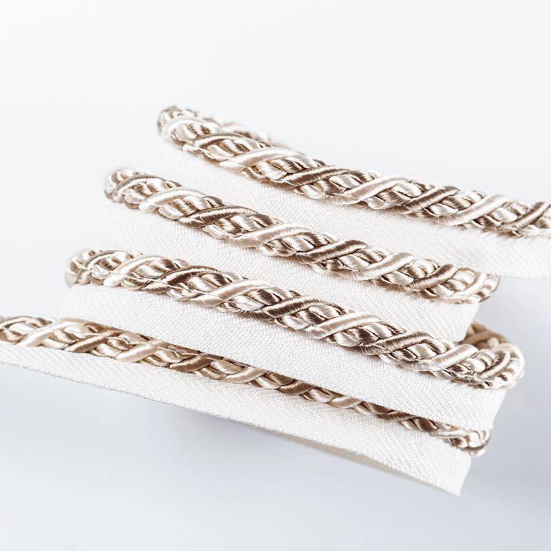 Декоративный витой круглый шнур, снабженый тесьмой для втачивания в стыковочный шов изделия. Применяется для отделки мягкой мебели, чехлов, декорирования домашнего текстиля, штор, покрывал, подушек. Позволяет изделию сохранять форму, образуя каркас. Диаметр шнура - 8 мм. Общая ширина шнура с тесьмой - 2 см.