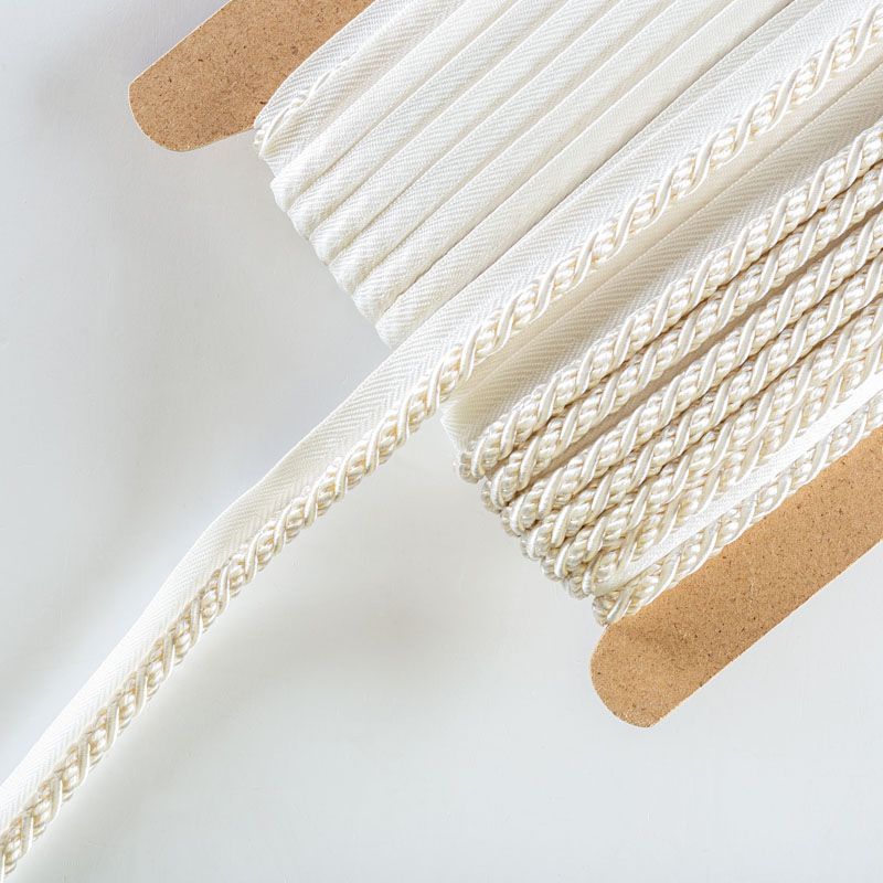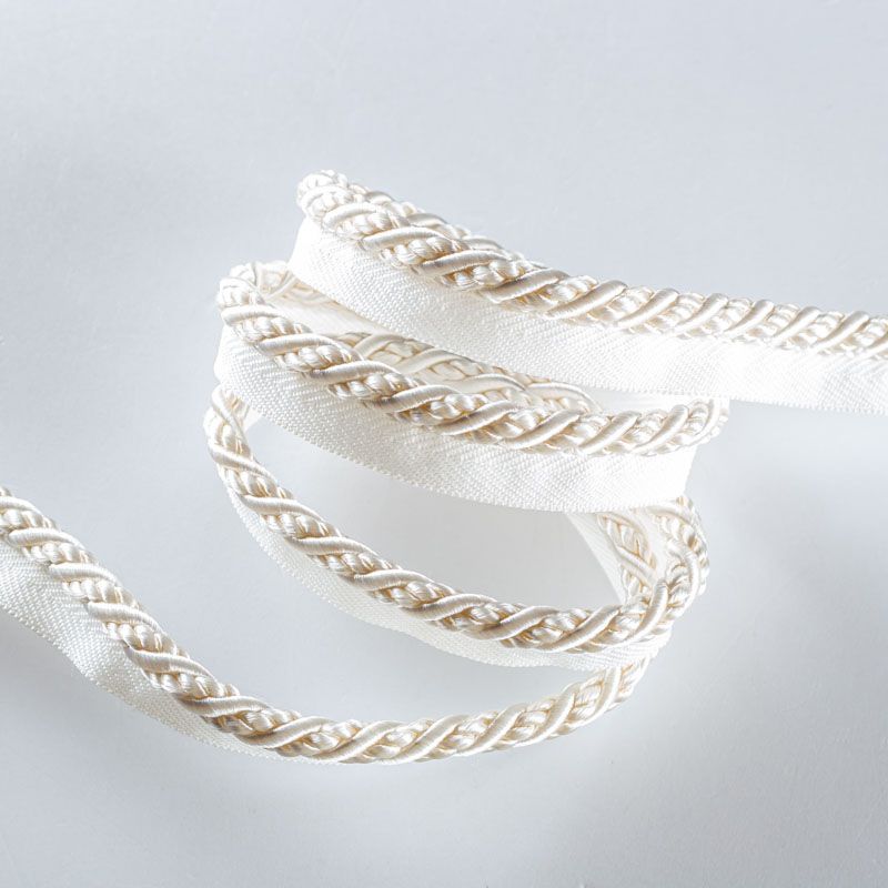 Декоративный витой круглый шнур, снабженый тесьмой для втачивания в стыковочный шов изделия. Применяется для отделки мягкой мебели, чехлов, декорирования домашнего текстиля, штор, покрывал, подушек. Позволяет изделию сохранять форму, образуя каркас. Диаметр шнура - 8 мм. Общая ширина шнура с тесьмой - 2 см.