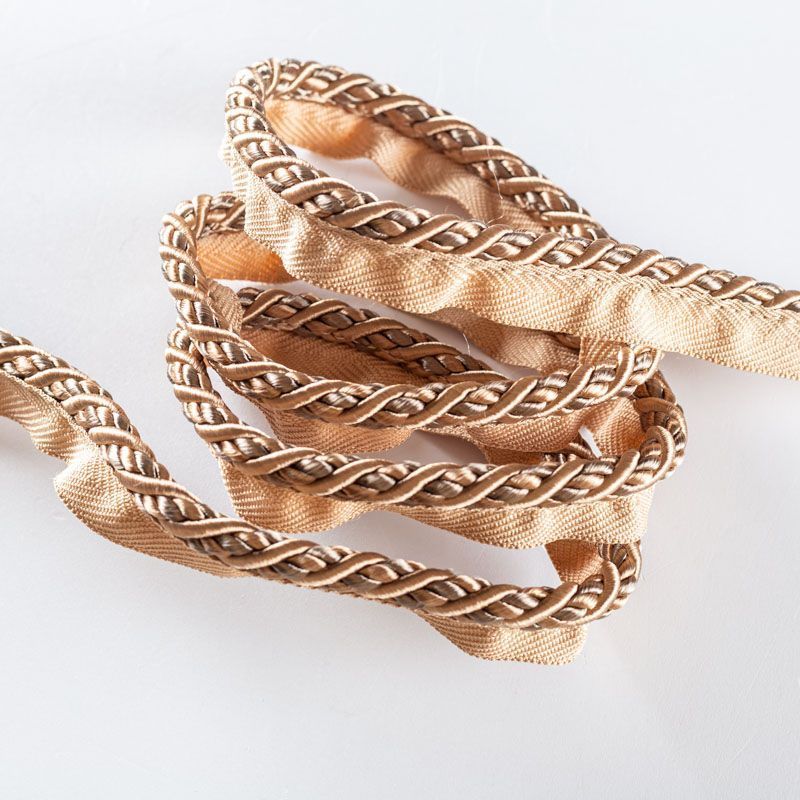 Декоративный витой круглый шнур, снабженый тесьмой для втачивания в стыковочный шов изделия. Применяется для отделки мягкой мебели, чехлов, декорирования домашнего текстиля, штор, покрывал, подушек. Позволяет изделию сохранять форму, образуя каркас. Диаметр шнура - 8 мм. Общая ширина шнура с тесьмой - 2 см.